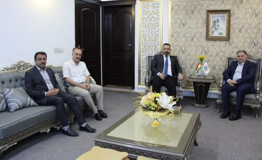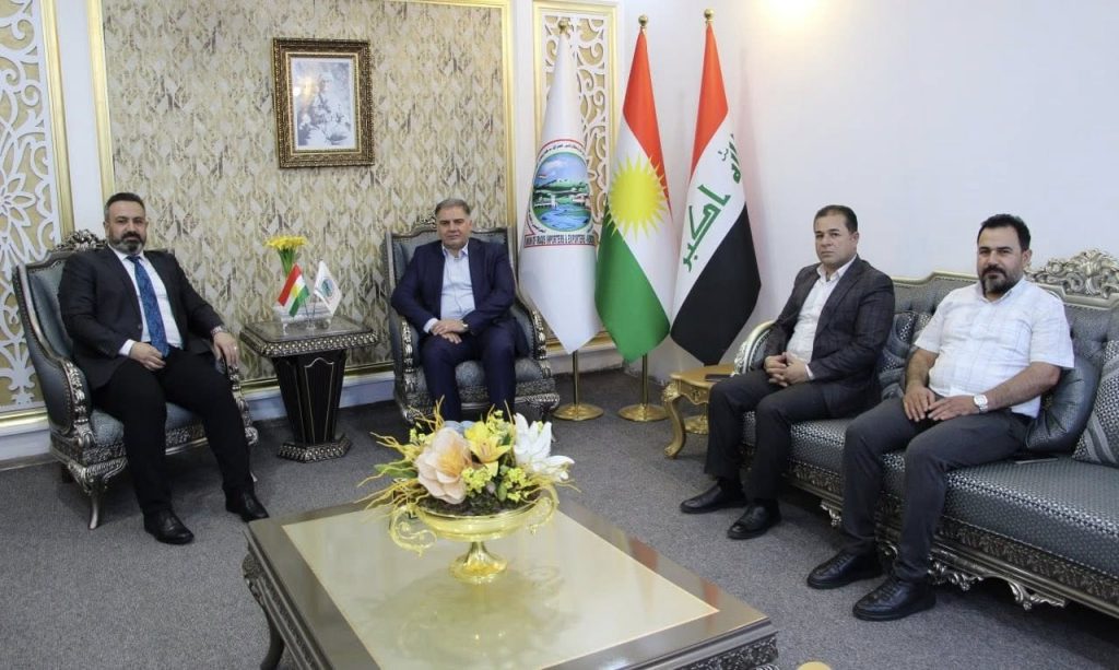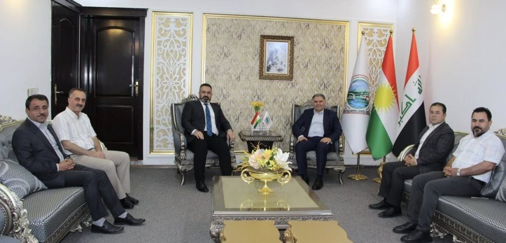 In the presence of Mr. Rasul Haji Omar, President of Erbil Branch of Kurdistan Regional Importers and Exporters Union, accompanied by Mr. Sheikh Khalid Warti, Dshuan Sherzad, members of the Executive Committee of Halwar Branch, received Mr. Walet Harki Mr. Idris Abbas Sharif, active member of Erbil Branch and Erbil Commerce, the aim of the meeting was to facilitate the work of businessmen and strengthen relations between the two sides and develop the economic and trade level of the Kurdistan Region